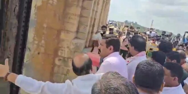 ಬಳ್ಳಾರಿ : ಜಿಲ್ಲೆ ಹೊಸಪೇಟೆ ತಾಲೂಕಿನಲ್ಲಿ ಇರುವ ಮುನಿರಾಬಾದ್ ತುಂಗಭದ್ರಾ ಡ್ಯಾಮಿಗೆ ಇಂದು ಬಿಜೆಪಿ ರಾಜ್ಯಾಧ್ಯಕ್ಷ ಬಿ.ವೈ ವಿಜಯೇಂದ್ರ, ಮಾಜಿ ಸಿಎಂ ಬಸವರಾಜ್ ಬೊಮ್ಮಾಯಿ ಭೇಟಿ ನೀಡಿದ್ದಾರೆ. ಈ ಬಳಿಕ ಸುದ್ದಿಗಾರರೊಂದಿಗೆ ಮಾತನಾಡಿದ ಮಾಜಿ ಸಿಎಂ ಬೊಮ್ಮಾಯಿ, ತುಂಗಭದ್ರ ಜಲಾಶಯದ 19ನೇ ಗೇಟ್ ಕೊಚ್ಚಿ ಹೋಗಿರುವುದಕ್ಕೆ ಅಧಿಕಾರಿಗಳೇ ಹೊಣೆ ಎಂದು ಆರೋಪಿಸಿದ್ದಾರೆ. ಈ ವೇಳೆ ವಿಪಕ್ಷ ನಾಯಕ ಆರ್ ಅಶೋಕ್ ಕೂಡ ಉಪಸ್ಥಿತರಿದ್ದರು. ಜಲಾಶಯದಲ್ಲಿ ಕೊಚ್ಚಿ ಹೋಗಿರುವ ಗೇಟ್ ಸರಿಪಡಿಸುವ ಕೆಲಸ ನಡೆಯುತ್ತಿದೆ.